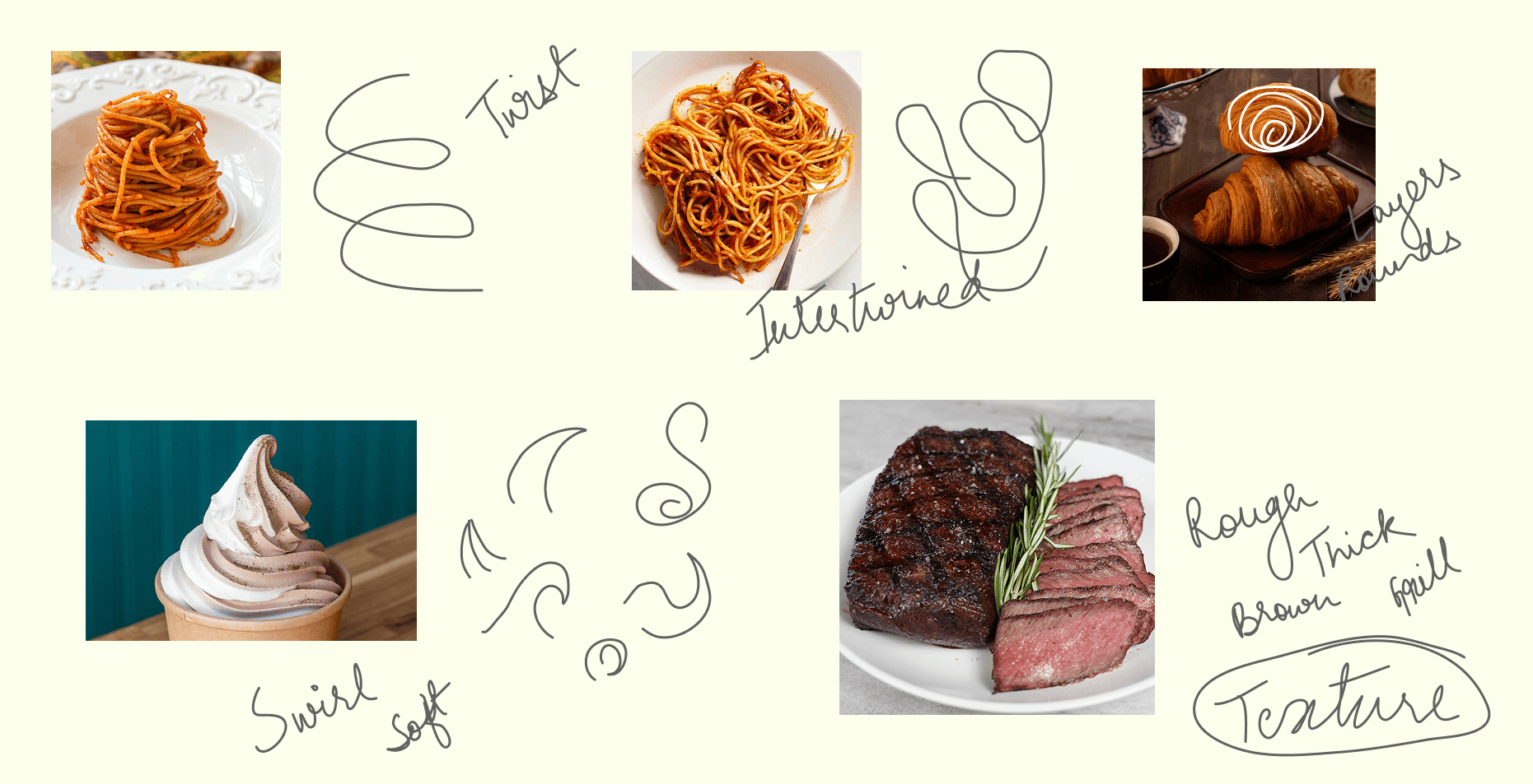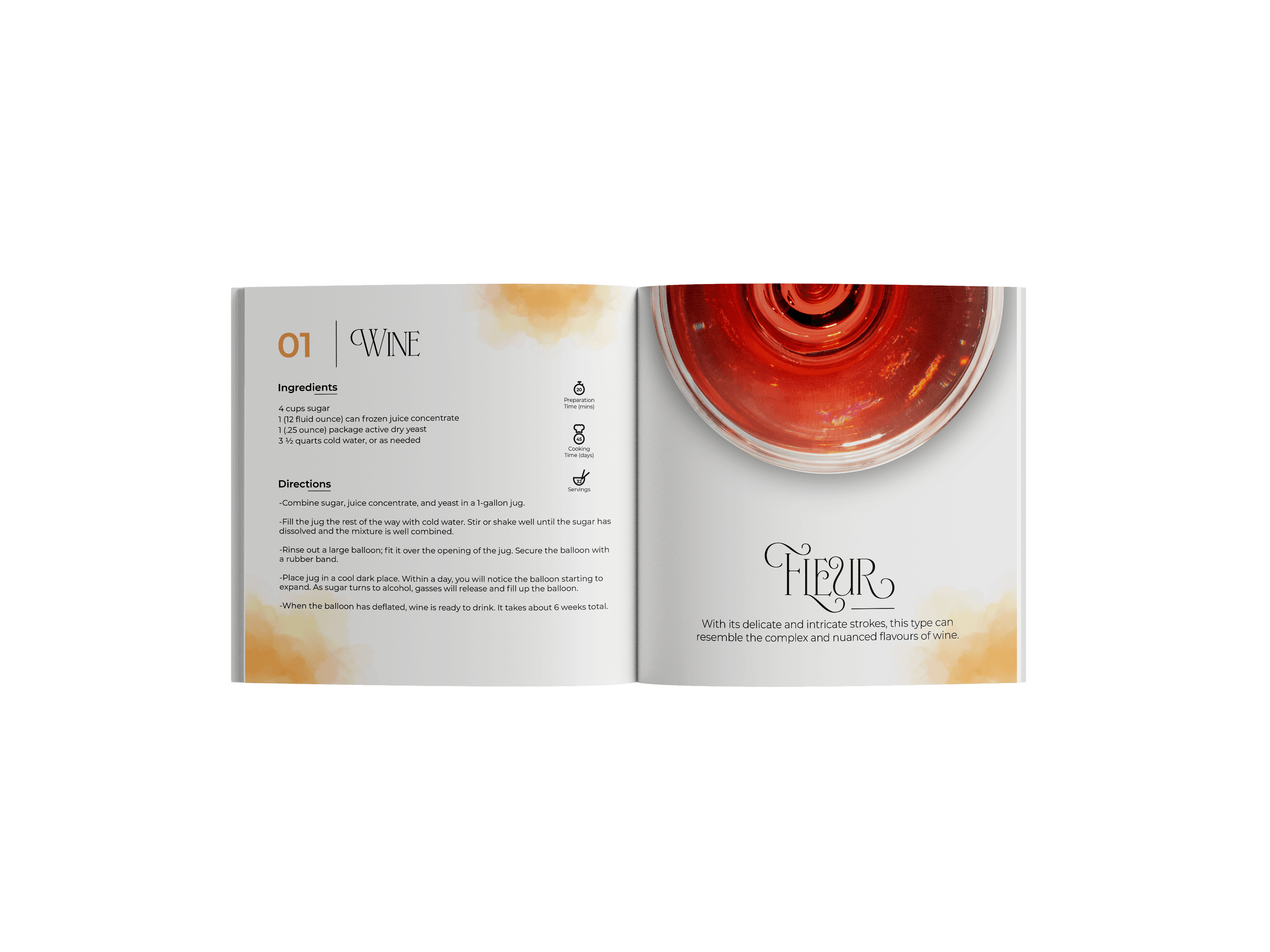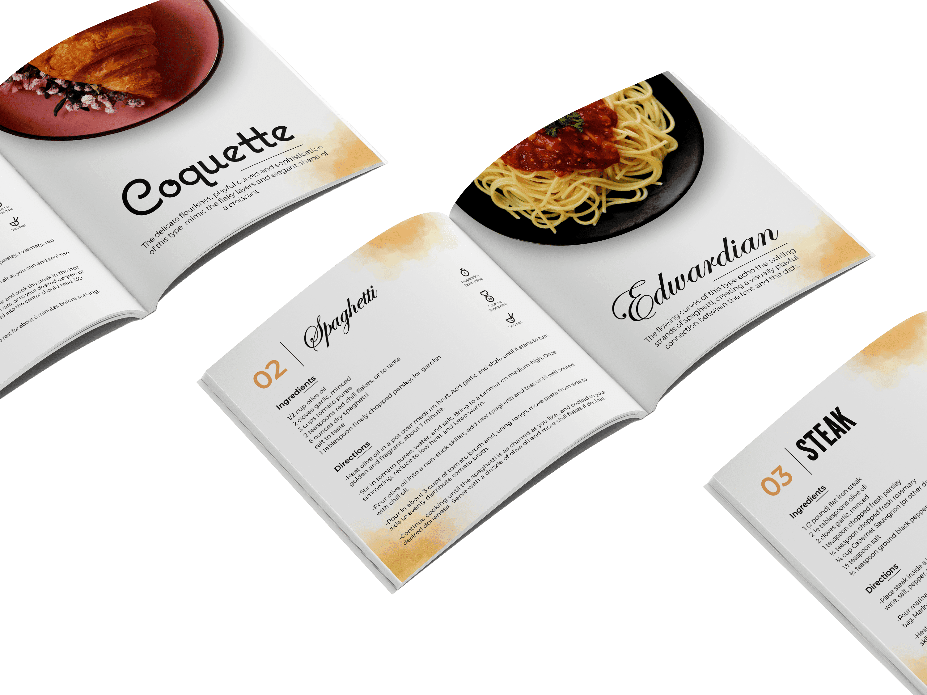 The typefaces not only communicates the recipe's details but also evokes the emotional and sensory qualities associated with each dish, enhancing the overall culinary experience.